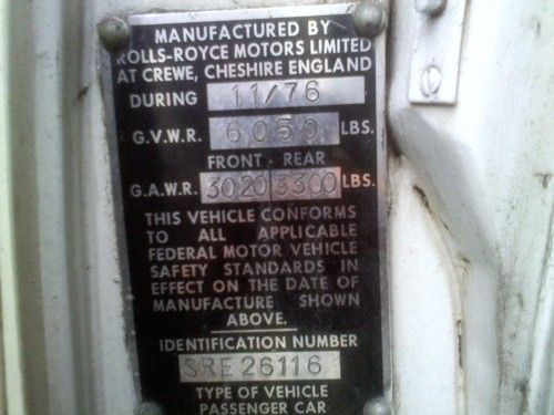 1976 ROLLS ROYCE, LISTING FOR A FRIEND OF MINE, THE CAR NEED SOME TLC AND BODY WORK TO MAKE IT IN EXCELLENT CONDITION, IT DOES NOT NEED MUCH, IT RUNS, SHIFT AND A/C WORK, IT HAS A 350 CHEVY ENGINE, ALL LIGHTS WORK RADIO,A/C, ETC. MY FRIEND USED THIS CAR FOR WEDDINGS, HE IS ASKING FOR 7500.00 FIX IT UP AND YOU WILL HAVE A REAL NICE CAR. REMEMBER IT NEEDS TLC AND MINOR BODY WORK. IF YOU LIKE TO MAKE A REASONABLE OFFER BRING IT AND I LET HIM KNOW. THANKS FOR LOOKING