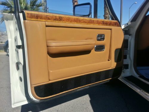 1989 rolls Royce SILVER SPIRIT III THIS VEHICLE IS AN EXCEPTIONAL VEHICLE, DRIVE IN THE LAP OF LUXURY WITH THIS CLASSIC ROLLS ROYCE SILVER SPIRIT FULLY EQUIPED WITH ALL STADARD EQUIPMENT, POWER WINDOWS AND LOCKS ( ALL FUNCTIONAL ) POWER SEATS, LUXURIOUS FACTORY CHERRY WOOD GRAIN INTERIOR, CHROME ACCENTS AND KNOBS, ORIGIONAL BLACK SHAG CARPETING WITH TAN LEATHER TRIM, ORIGIONAL WHEELS IN GREAT CONDITION, SPACIOUS TRUNK WITH ITS ORIGIONAL LINNER IN EXCELLENT CONDITION. THE OVERALL OF THIS CAR IS VERY CLEAN, ITS ALL THERE. THE ENGINE RUNS GREAT, RECENTLY TUNED UP WITH NEW FLUIDS AND PLUGS, THE PAINT IS IN GREAT SHAPE, LOTS OF SHINE, THE TIRES AND CAPS ARE ABOVE STANDARD, THE INTERIOR IS CLEAN, NO RIPS OR TEARS. ALONG WITH THE TUNE UP THE REAR GAS SHOCKS HAVE BEEN REPLACED BY ROLLS ROYCE, THE SUSPENSION IS NICE AND SMOOTH, FLOATS ALONG JUST LIKE IT SHOULD. I'VE DRIVEN THIS CAR DOWN THE LAS VEGAS BLVD GETTING ALL THE ATTENTION A ROLLS ROYCE DESERVES. I RATE THIS CAR N 8 OUTOF 10, 8 BASED ON THE MILES AND FEW MINOR FLAWS DESCRIBED. OWN THE ROLLS ROYCE EXPERIENCE FOR VERY LITTLE, THIS CAR REQUIRES LITTLE TO NO RECONDITIONING DEPENDING ON YOUR LEVEL OF PERFECTION, ITS READY TO GO !! SERIOUS BUYERS ONLY, PLEASE BID WHEN YOUR READY TO BUY, PLEASE ASK ANY QUESTIONS YOU HAVE BEFORE YOU BID DEPOSIT REQUIRED UPON WINNING THE SALE, NO FINANCING OF ANY KIND AVAILABLE ON THIS CAR, CASH, CERTIFIED CHECK OR WIRE TRANSFER ONLY PRIOR TO VEHICLE LEAVING OUR FACILITY, WE ARE A LICENSED AND BONDED DEALER DEALER # 41864 WWW.VIVAAUTOSALES.NET, SAM AT 702 994 9464 CELL FLAWS - FRONT DRIVERS SEAT HAS BEEN REUPOLSTERED, FRONT DRIVERS SIDE HAS MINOR ROCK CHIPS SHOWN IN PICTURES, REAR QUARTER PANEL HAS BEEN TOUCHED UP, ANTI LOCK BRAKE LIGHT OCCASSIONALLY COMES ON , BRAKES ARE FUNCTIONAL |