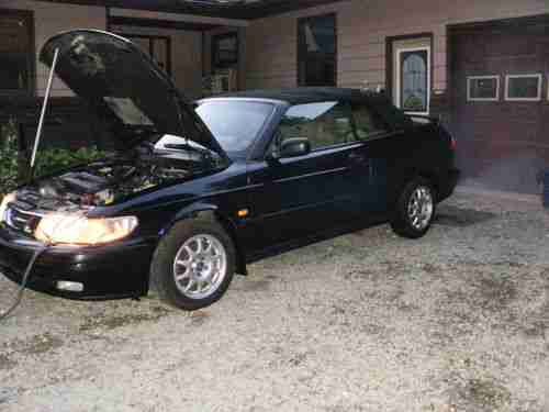 **.NO RESERVE AUCTION** @ starting bid** @** $99.99** 2000 SAAB 9-3 2dr convertible.Dark blue exterior with fair amount of scuffs,scrapes & dings to every panel of the car.WE took pic's of the most severe damage - but more explaining may help - the front bumper cover seems to be out about an inch and it is NOT fastened down well.Paint itself is shiny and this car is from the south- showing NO rust.Black cloth type convertible in decent shape - sits out in the weather here- NO leaks.Back window is glass and has rear defroster.Interior is leather/ tan in color showing signs of wear - mostly to the drivers seat/area.The rear cupholder is either broken or just fell out of place.Wheels are factory Saab and in pretty good condition with matched sets of Michelin's up front with plenty of tread left.The backs are a matched set with minimal life left.Motor is 2.0 liter turbo with 118K for mileage as shown.Automatic transmission.This SAAB (story) fires right up -ALTHOUGH there is NO battery ( will jump start off anything ) AND the hood cylinders are NO good.Car seems to be @operating oil pressure , does not overheat.There are NO dash lights on with the car running.( and they DO work ) There is no mixing of the oil & antifreeze.Although , we have been told that IN ADDITION to the turbo being BAD - the intake manifold gasket AND water pump should ALL be changed together. ( and IF you are in that far ? why not the timing chain/belt also? ) Pictures of this car smoking are while it's running ( ) SO ,there you have it: A 2000 SAAB story @ NO RESERVE - STARTING BID IS $ 99.99. This car has a CLEAR/CLEAN title in my name personally.**You are encouraged to **come by - **send your mechanic - **ask questions -** take more pictures ANY day this car is listed between the hours of 8am-8pm.PLEASE BE AWARE : THIS SAAB NEEDS WORK - even though it does- run,drive,move,stop ,ETC ...PLEASE DO NOT PLAN ON DRIVING THIS CAR TO IT'S NEW HOME.- IT IS listed as needing work! Winning bidder has 48 hours to do the deposit thing OR get here by then.FULL payment will occur prior to this car leaving my driveway.Notary service is only 5 miles away- available till 7pm weekdays.