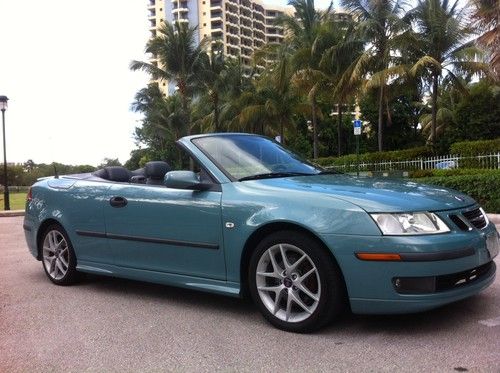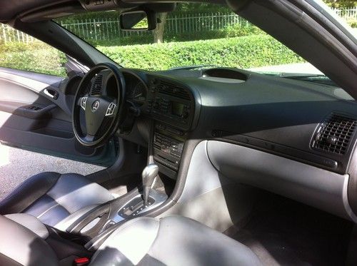 I am selling this beautiful 2004 SAAB 9-3 AERO 2 doors CONVERTIBLE with only 115K MILES in GREAT running condition. AUTOMATIC. GREEN ORIGINAL PAINT. CLEAN TITLE, non smoker car. ALL THE WINDOWS WORK. Tires are IN GOOD condition. This car was kept very clean in a garage. The body is straight with shinny paint, very clean, great looking condition. The interior is very clean with nice leather and no rips in the seats, no cracks on the dash. The seats ARE LIKE NEW. The car is loaded with power windows, front air bags and CD player AND 6 CD CHANGER. The engine runs very good, no noises, no smoke, no shaking and no leaks, NO CHECK ENGINE OR ANY OTHER WARNING MESSAGES ON. The transmission is in great condition as well, it shift smooth and firm without any slip or jerking. The A/C is ice cold even in the Florida heat, all the glass is in good shape, and the breaks feel good and strong. THE TOP IS WORKING PROPERLY. THE TOP IS IN LIKE NEW CONDITION, NOT FADED, CRACKED OR RIPPED. The car is a lot of fun to drive and an absolute pleasure. With that being said the condition of the car is very good. I'm attaching many high quality pictures so you can see the car in detail from every angle inside and out. If you have any questions at all about this car please feel free to call me at 954-549-8090. PLEASE CALL FOR MORE INFO. WE CAN ALSO ARRANGE FOR SHIPPING. WE ENCOURAGE OUR CUSTOMERS TO INSPECT THE VEHICLE BEFORE BUYING. Thank you.