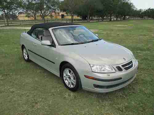 You are bidding on a 2006 Saab 9.3 Convertible ... 2.0 Turbo ...6 speed transmission ... dual power HEATED 6-way seats ... Silver Exterior ... Gray leather interior ... Black Canvas Top ... Florida Car with 73,000 original miles ... in excellent condition. Listed below are the following options and equipment: