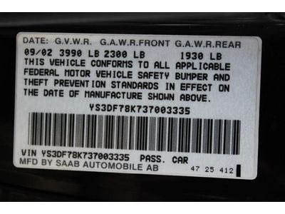 2002 saab 9-3 se convertible 2-door 2.0l, low miles, great condition(US $6,500.00)