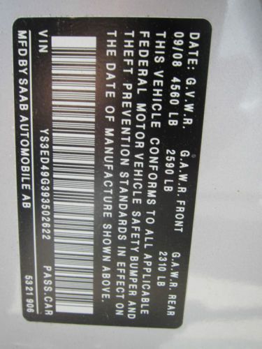 2009 SAAB 9 5 SEDAN WITH COLLISION DAMAGE. Damage: Vehicle will need to be put on a frame machine since the right rear rail is damaged , right rear quarter panel and floor area. The trunk appears to be repairable. Vehicle will need a rear bumper complete, right tail light in trunk, front bumper cover is included with this vehicle. I had a front bumper cover that was purchased some time ago. You will need the front grilles on the front bumper cover and fog lamps unless you choose to just buy fog lamp covers. This vehicle has extremely low mileage and is very clean. Engine runs excellent and the car runs and drives to make loading a bit easier. The airbags are fine! Equipped: 2.3 liter 4-cylinder turbo engine, auto trans, leather interior , dual front power heated seats, power moon roof, OnStar, alloy wheels etc. vehicle is being sold in condition "AS IS!" with a repairable Connecticut salvage title. Please check your local salvage laws before bidding. I can arrange shipping at a reasonable rate. I can also assist overseas buyers with export arrangements. Contact Allen 201-248-3818. Check my other Ebay items for more Saab's.