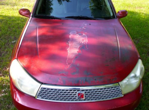 I selling a 2003 red Saturn L300. It has 110400 miles. It could use a paint job. Please see the pictures of the hood, and the bumpers have nicks in them. And days ago i hear a tapping in the car. You can't hear in when you are in the cabin. But . . . i don't know anything about cars. So i am not able to fix it and don't have money to toss at someone to fix it that i don't know and trust. There is no warranty on this car. And i don't deliver. The Good: It is a auto, leather seats, power driver seat, cold ac, heated seats, sun roof. The inside of the car can not be knocked. I went onto Kelly Blue Book and priced the car out in Fair condition. They said $3469.00! I have a clean title, in my name! Please feel free to text, call or email. Thank you for the read! |