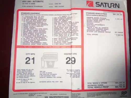 2002 fully loaded Saturn top of the line L300. Like Brand new Condition--Check the pictures. 65,000 documented very easy grandma miles. All possible factory options. Gets 30 miles per gallon on the highway. Like brand new leather interior. Very well cared for since new. Never in a wreck, never repainted, or abuse in any way. Looks & Runs Like New! Clear and clean Texas title. Extended warranty for another 12,000 miles and 1 year.