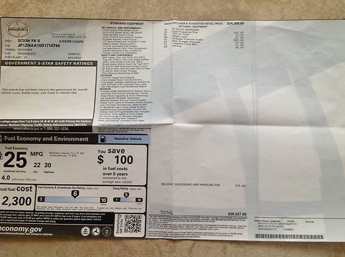 Brand new 2013 scion fr-s 6-speed manual whiteout paint! just arrived! stick!(US $25,570.00)