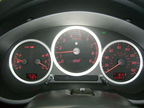 68,xxx miles and counting as this is my daily driver. I am the second owner, purchased at 52,000 miles, and the gentleman before me was in his mid 40's. Needless to say, this 2007 STi has been pampered. Oil changed every 2,500-3,000 miles, routine maintenance as called for in the owner's manual. There is one carfax report - the previous owner left the windows open and had to replace the airbag sensors. No body damage or accidents ever. The only modifications to the car are the Cobb short throw shifter (first owner's only mod), Cobb Accessport, DW 255 fuel pump, 850cc injectors, Grimmspeed Uppipe, Cobb downpipe, stage 2 tune on 91 octane and E85 (6 maps in total). I have all receipts, paperwork, tune sheets, stock parts, etc. Car was tuned by Harvey at The Boost Creep in Longmont, CO. Original paint is in great condition. Tired and brakes are in fine shape. Never tracked. Runs smooth and super reliable. Extremely clean. Clear title. I have more photos if needed. Selling because job relocated me to London.