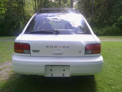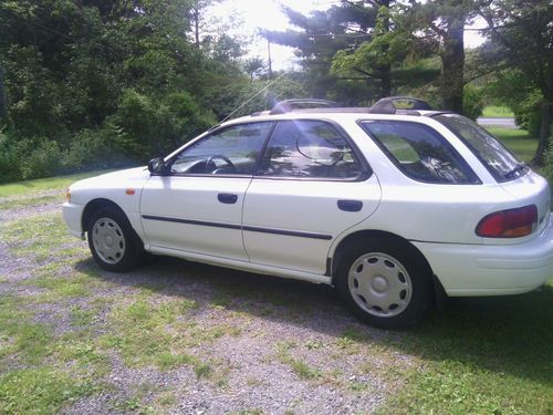 This is a very nice Subaru that comes with a one owner title . It drives nice and all option work as they should , including cold air . It is a five speed , awd ,and should get over 30 mpg . The interior is like new ,see pics . The car has had the rear wheel wells repaired with steel replacement panels . A nice job , and will stay nice looking . There is a dent on the lower rocker ,and the rocker end has some rust and paint flaking . This would be easy to have repaired . [ see pics ] The muffler and pipes are new , the tires are just less than half new . The car drives very well and should have years of use left ,it has the 2.2 engine . If you live in New York , you will have inspection and DMV expense to pay . All other bidders will have no extra charges . Wheel covers are different from side to side . I added some pictures .