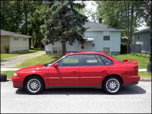Beautiful '97 Subaru Legacy GT!! 5-speed manual transmission with legendary Subaru all wheel drive!! 104,372 highway miles. Red exterior with Grey cloth interior. Super clean both inside and out with no pet or smoke odors!! Two minor rust bubbles on the rear wheel wells. No major imperfections found on the body. The tires are showing approximately 75% tread remaining. Power windows, power door locks, CD/MP3 Player, 16" factory alloy rims with hot heat and very cold AC. Front scoop and rear fin makes this car turn heads. The engine runs great. 1 previous owner.