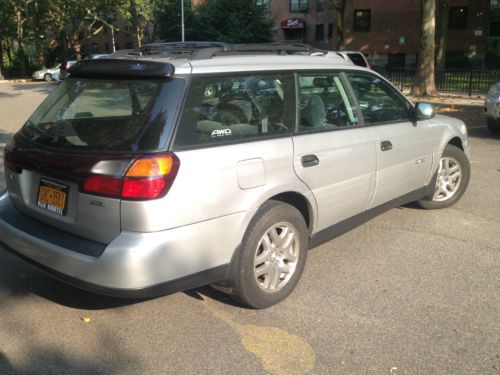 Up for auction is my 2004 Subaru Outback Wagon. This vehicle was my parent's car and was gently driven. This car is smoke free and the paint still shines. There are no major stains, holes or tears in the upholstery. Headliner, door panels and carpets all good with the exception of a small marks (see pictures). Exterior features include rear gate spoiler, multi-reflector for lights, Outback-style body color-side molding, automatic-off 4-beam halogen headlights, protective rear bumper step pad, raised-profile black roof rails with cross bars, winter weather package including heated driver and passenger side rear view mirrors, rear window defroster, heated windshield. Interior features include power windows with driver side one-touch down function, power driver and passenger side rear view mirrors, cruise control, cargo area hooks, 12V auxiliary outlet in center console, front passenger setback net pocket, power door locks, black / gray flat woven upholstery, overhead console, heated front seats, cargo area security cover, (2) remote keyless locks including rear tailgate unlock, illuminated visor vanity mirror with extenders. Mechanical features include electronic throttle control, rear limited slip differential, rack and pinion steering, 4 wheel disc brakes. Safety features include driver and passenger front airbags, driver and passenger side impact airbags, 4 wheel anti-lock brakes 9ABS), daytime running lights, front and rear side curtain airbags. There are factory original rubber floor mats in the front and rear seating area Extra set of winter rubber floor mats (original cloth mats near-mint) and a rubber cargo area mat in the rear. All tires are in good condition. The AC needs to be recharged. There are a few noticable dings and scratches around the bumpers and the back wheel wells have been painted for rust. Both are pictured. Otherwise, there are no known issues with the vehicle but you are buying it as is. I would not hesitate to drive this vehicle anywhere, any distance. The vehicle is currently registered and inspected and driven minimally. Thanks for looking. If you have any questions I can be reached directly at 718 650 9149. I will not have access to email on the week end the auction ends so don't wait until the end to ask your questions. I won't be able to reply by email. Please call.