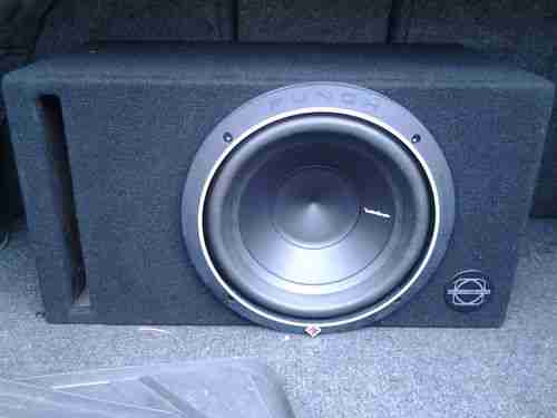 - JL Audio 360.2 amplifier pushing a 10" rockford p2 subwoofer in a bassworx ported box