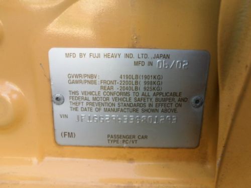 Engine:2.0L 1994CC H4 GAS DOHC Turbocharged