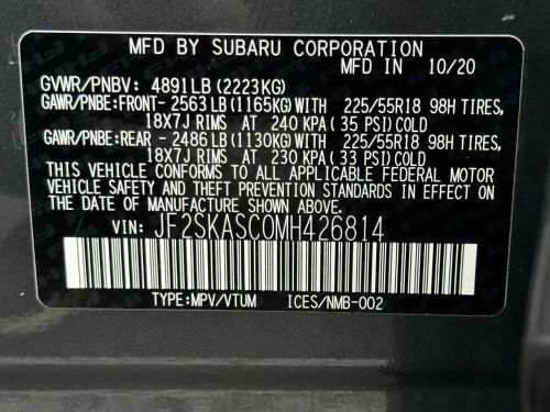 VIN (Vehicle Identification Number): JF2SKASC0MH426814