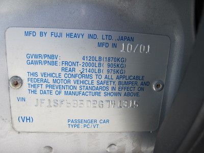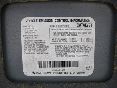 Engine:2.5L 2458CC H4 GAS SOHC Naturally Aspirated