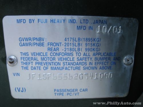 Engine:2.5L 2458CC H4 GAS SOHC Naturally Aspirated