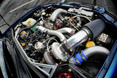 Engine and Transmission Fresh EJ22T 2.35L stroker with Wiseco Stroker Piston, Pauter X Beam Rods and EJ25 crank, ACL race bearings, ARP head studs, STi oil pump, oil squirters, Gates Racing timing belt and more, only 1200 miles! Heads are JDM V7 with AVCS, JDM Spec C cams, Ferrea Valvetrain and Ti retainers, good for 8,000 rpm Fueling is handled by FIC 2150cc injectors, Aeromotive rails, black AN fittings and custom lines, Walbro Fuel Pump NGK Iridium Plugs, STi Coils and Kenne Bell Boost-a-spark Turbocharger is a Borg Warner S360 S300SX 60mm turbo with .88 AR housing, external TurboSmart Comp-Gate wastegate and TurboSmart Race Port BOV, AEM Dry Filter and Front Mount Intercooler Turbo is fed by a stainless steel equal length manifold and custom T4 uppipe. Custom stainless downpipe joins up with the 3" stainless MR exhaust. Koyo Radiator with Dual Spal Fans and Silicone Hoses PPG Straight Cut 5 Speed Transmission with ACT lightened flywheel and ACT Six Puck Clutch All controlled by an AEM Stand Alone EMS with console mounted USB (original ECU included) Tuned exclusively by Ron Soliman of RS Motors in Burnsville, MN Exterior Body