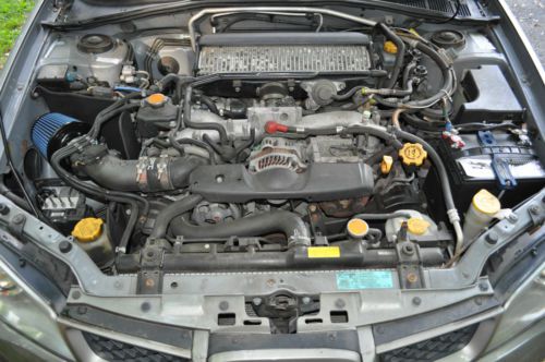 The pictures will show a rust bubble about the size of a dime on one door and a 1/4 inch gap on the right side of bumper that I got learning to drive. Very clean interior with new Pioneer stereo and Kicker speakers professionally installed. I have made minor additions to this WRX such as, a Kartboy short throw shifter and bushings, SPT Hi Flow Air Intake with heat shield, Sparco Shift knob, StopTech Street Performance Brake Pads and StopTech Stainless brake lines. As previously stated all professionally installed. In the last 12 months we have replaced the Filter for the Air Intake, OEM clutch, Catalytic convertors, muffler, battery, tires and had a 4 wheel laser alignment done. The Motegi Rims have some wear and scratches you should be able to see in the pictures. The oil changes have been done regularly with only synthetic oil. This car is sold AS IS with no warranty and will have no refunds