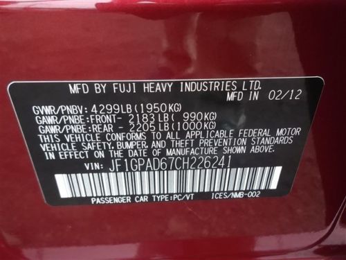 Engine:2.0L 1995CC H4 GAS DOHC Naturally Aspirated
