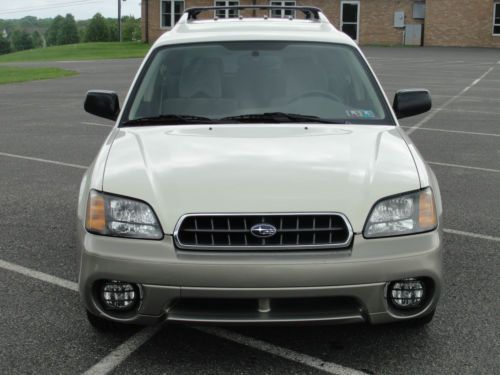 Absolutely amazing condition, one owner, female driven, full service history, all service up to date, AND major services complete (timing belt replaced in 2013, both head gaskets replaced in 2013 - same visit). Brand new spark plugs and spark plug wires (installed last week) new air filter, new cabin air filter, new dashboard lighting, new rear brake pads! This has been my family's trustworthy daily driver for the past 11 years, and simply needed something bigger. We are sad to see it go, but are sure it's ready to take care of you for a long time. Professionally installed tint all around: 32% on driver and passenger, 23% on rear passenger and cargo area/rear window (Sunsational in Bridgeport, PA). Installed air horns and a genuine Subaru Outback hood/nose protector are also included. Please feel free to ask any questions - there are LOTS of pictures to hopefully give an indication of this vehicle's terrific condition. Happy Bidding - and Good Luck! To note the few imperfections for full disclosure (see pics), there are small scratches near the passenger side foglight and there is a tiny indent on the driver front quarterpanel. The new plugs and plug wires were installed last week to address a cylinder 3 misfire that was diagnosed after check engine light briefly came on (and is now no longer on). This car will need a driver side front wheel bearing replacement at some point. Car is located in Spring City, PA, 19475. Standard Features Include: 4-Wheel Disc Brakes A/C ABS AM/FM Stereo Adjustable Steering Wheel All Wheel Drive Aluminum Wheels Automatic Headlights Bucket Seats CD player Cargo Shade Child Safety Locks Cloth Seats Cruise control Daytime Running Lights Driver Adjustable Lumbar Driver Air Bag Driver Illuminated Vanity Mirror Driver Vanity Mirror Floor Mats Fog Lamps Front Reading Lamps Heated Front Seat(s) Heated Mirrors Intermittent Wipers Keyless Entry Locking/Limited Slip Differential Luggage Rack Pass-Through Rear Seat Passenger Air Bag Passenger Illuminated Visor Mirror Passenger Vanity Mirror Power Door Locks Power Driver Seat Power Mirror(s) Power Outlet Power Steering Power windows Rear Bench Seat Rear Defrost Tires - Front On/Off Road Tires - Rear On/Off Road Variable Speed Intermittent Wipers Woodgrain Interior Trim WARRANTY INFORMATION: This vehicle is being sold as is, where is with no warranty, expressed written or implied. TERMS AND CONDITIONS: Winning bidder must contact us within 24 hours of auction end, and make arrangements for payment at that time. A $500.00 deposit is due within 24 hours of end of auction. The remainder is due within 3 days of auction end. If no contact is made within 24 hours we reserve the right to re-list the vehicle, sell it to the next high bidder, or sell it otherwise. Most banks and credit unions do not finance vehicles older than 2000 or with more than 100K miles. Make sure if financing that your financial institution accepts the year and miles of this vehicle before bidding. Please arrange and finalize your financing prior to bidding.