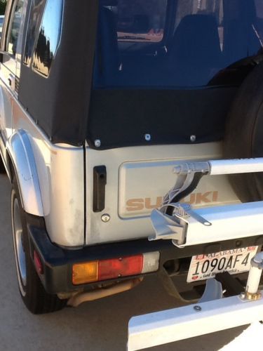Up for auction is a nice 1988.5 samurai. Most of this Sammy's life was spent behind a motor home. This Sammy has never been off pavement. There is no rust that I have found anywhere on this vehicle. There is a dent in front left side of bumper from tow bar (see pic) also some sort of touch up paint has been applied under the handle on rear tailgate door, also see pic. There is a few minor scratches on vehicle that are expected for a vehicle of this age. The motor runs out great with no smoke what so ever, engine cranks very quickly and easy even in cold weather. Every seal and gasket has been replaced on motor within the last 800 miles along with timing belt,idler pulley, plugs,wires,distributor cap,Venturi tube in carb,fuel pump etc. (have all receipts) has new factory style/size white wall tires, new top with tinted windows on top, ( have original factory top from 1988 as well) , new brakes, steering stabilizer, poly bushing for shifter in transmission and transfer case, pioneer CD player, 2" trailer hitch receiver, spare tire mounted on tailgate with cover, front (bra) used when towed behind motor home, has back seat that also folds up or can be removed, has all original factory carpet. Seats have covers over them due to thread in original seat covering seems have turned loose. The small door on dash above vent is missing, and plastic hinge on glove box is broke. Underneath Sammy is all factory original, it still has the factory paint on underside of body and frame that matches the outside of body( very rare to see now days) Also have rebuild kit for transmission and transfer case,new clutch, and a new flywheel. I bought all this thinking it needed to be rebuilt due to a whining noise, turns out the noise was water pump and timing belt tensioner and I never returned these parts. The transmission,transfer case and clutch are all quite,tight and in perfect operating order. Vehicle runs well enough to drive across country but is speed demon, 65-70 is all Sammy will do safely, or with me driving it anyway.it is getting around 28 mpg around town, cost around $21 to fill up. Chrome beauty rings on wheels do have a bit of old surface rust on them. **** bike rack not included**** ****for sale locally, so reserve right to cancel at anytime**** ****Please ask any questions because I am sure I forgot something, only dumb question is the one you never ask**** **** buyer responsible for pick up or shipping arrangements, I will help any way I can**** |
