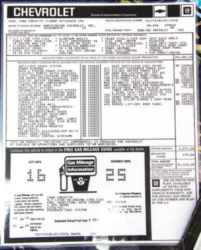 Full payment is required. Buyer responsible for vehicle pick-up or shipping. 1988 2 door corvette, 5.7 liter V8 engine, 4 speed automatic transmission, digital gauges, T-Top, and in excellent condition. California title and carfax available. Perfect for the entry level enthusiast looking for a starter sports car or a collector who understands the value of a forgotten gem of the 1980's. |