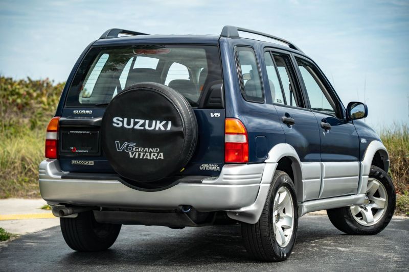 For sale 1999 Suzuki Grand Vitara JLX 4WD Power comes from a 2.5-liter V6, rated at 155 horsepower and 160 lb-ft of torque. 16-inch wheels, Roof rails, Rear wiper Rear-mounted spare wheel, Cloth upholstery, Power-adjustable door mirrors, Air conditioning, Cassette player, 4-speaker sound system, Cruise control!