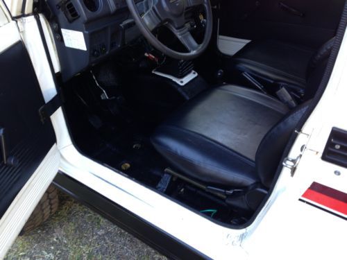 -New soft top -New seats - Stereo ( works perfectly ) -New tires -100% Rust free -Comes equipped with TOW BAR -Bikini Top -Has back seat ( seats 4 safely ) -Original Manuals -Original Reciepts -Clean Title in hand
