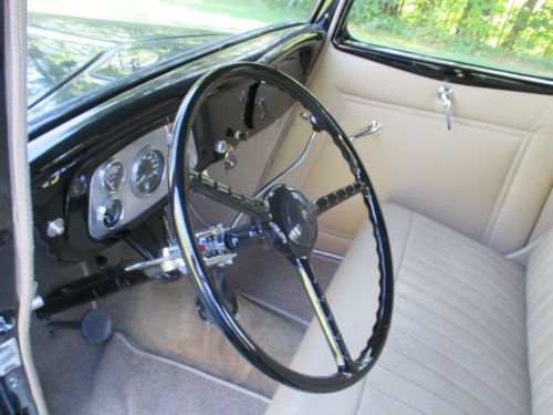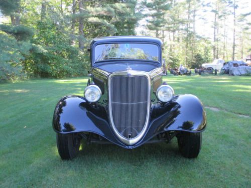 This is a recent rebuild of a post war hotrod. All original Ford sheet metal and top tack strip, except front fenders which are excellent new steel. Good, straight, original nickel plated grille with a few wear spots and painted fins. Dupont Centari, sanded and buffed for original appearance. Maroon single hand done pin stripe above body line to match hubcabs and rear bumper. 283, Powerglide, 9" rear with 3:50 gear. Dropped and stretched '34 axle, with uncut wishbone, '35 radius rods, tube shocks. Rides and handles very well with bias ply tires. Rebuilt by present owner. Professional body and fender man for more than 44 years. 19 years fulltime in restorations - Stutz, Cord, Bugatti, etc. 1st time seller on ebay. PayPal down payment of $2000. required within 48 hours of winning bid. Potential bidder feel free to call and to inspect prior to bidding. I have listed this vehicle for sale locally; therefore auction can end at anytime. Telephone Randy at 603-523-7044 8am - 8pm EST.
