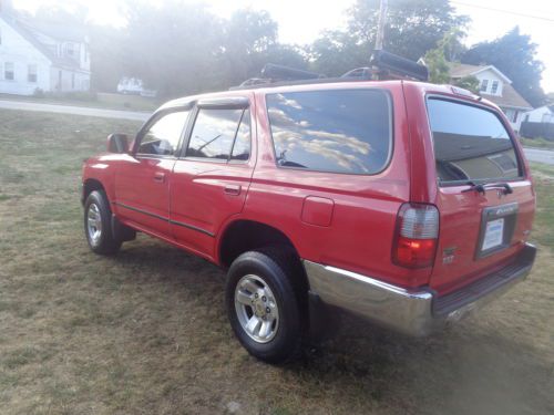 up for auction is this super nice 4 runner sr5-pics speak for themselves - runs like it looks, cant even hear it run - drives nice and straight- underneath is in great shape for age- still has original spare, manual, keys, etc, power windows, tinted, rain guards , tilt cruise, cd player -interior in excellent condition , minor blemish in drivers seat as shown in pics-don't think there r too many more out there in this shape,,, please look at our feedback and check out our other auctions as I will b adding cars daily someone will b the new happy owner!!! good luck ,,,happy bidding