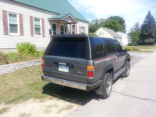 Thanks for looking at my auction, I am listing my 1987 turbo 4 runner. Paint is original, and it was never hit. I am the second owner, my father bought it brand new. There is 165000 on the body and approx 20000 on a factory rebuilt motor and turbo. Everything on the truck works, including the air conditiong and cruise control. The only thing that i know of that doesnt work is the rear defroster. There is some rust on the wheel wells, with the worst on the back comming up approx an inch and a half, front fenders are not that bad at all. The only issue its having right now is the trans wont downshift when going up a hill. Ive had this problem before and it was the solonoids and ended up costing 500 at a trans shop to fix. Take a look at the pics, you wont find a nicer all original factory turbo 4runner around. Only reason im getting rid of it as im a family guy now and need a 4 door, and seeing it was my daily driver it no longer serves a purpose. The truck is currently in New Hampshire where im working, but i could drive it to meet the northeast corner of Pennsylvania (Scranton area). WILL NOT DELIVER ANYWHERE ELSE!!! Being sold as is, where is except wehre specified.