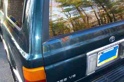 The Bad: Truck has the typical rust starting in a few places, at tailgate along door bottoms and at rear quarters below rear doors. Not bad, except the tailgate as shown in the photos. There is a little of the typical oil leakage from this 3VZE engine. There is some seepage at the front differential. I believe the truck will need u-joints, as there is vibration that feels like u-joints that starts around 60-70 mph. Valvetrain is a little noisy, as is common with a lot of these truck 3.0s. The rear defroster does not work. The factory radio/tape/cd player works fine, but the display goes out sometimes when warm. Paint is faded on the hood and roof. There is a dent and small spot on the passenger rear door, but I have a spare door that is an exact duplicate. The front bumper is slightly tweaked and there are a few holes drilled down low on the passenger side front of the bumper cover near the bottom by factory fog light location. Interior is pretty clean, but seat fabric up front is a little torn in spots and the typical dash pad crack is there.