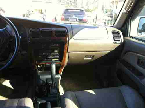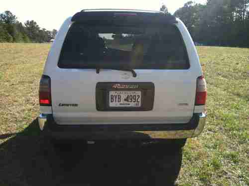 1996 TOYOTA 4 RUNNER LIMITED 4x4. 3.4L 3400 V6 ENGINE. . 157,000 MILES. THIS IS A SUPER NICE 96 4 RUNNER WITH, LEATHER INTERIOR, SUNROOF, POWER EVERYTHING,, LUGGAGE RACK, TOWING PACKAGE, MICHELIN LTX TIRES AND MANY MORE OPTIONS. IT HAS BRAND NEW FRONT STRUTS AND REAR SHOCKS . IT HAS THE PUSH BUTTON ON COMMAND REAR WHEEL DRIVE LOCKING DIFFERENTIAL THAT IS RARE.. FOUR WHEEL DRIVE WORKS PERFECT.. EVERYTHING ON THIS 4 RUNNER WORKS AND IT RUNS AND DRIVES GREAT.. IT HAS ALWAYS BEEN MAINTAINED AND SERVICED WITH OIL CHANGES EVERY 3000 MILES.. THIS HAS BEEN THE MOST DEPENDABLE VEHICLE I'VE EVER OWNED AND HATE TO SELL IT BUT WE HAVE TOO MANY VEHICLES AT THIS TIME. PLEASE LOOK AT PICTURES AND EMAIL ME WITH ANY QUESTIONS.