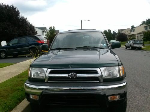 This is my 1999 Toyota 4Runner. The color is jade green with tan interior. The tan interior has some stains on the seats and carpet. This is a wonderful vehicle with 190406, but the engine was just rebuilt completely, it also has a new muffler from the front to the back with a new catalytic converter. This is because the engine has a knock on it, when the mechanic opened the head, one of the piston was going o, therefore I had to rebuild the engine. I had to spend over 1900 dollars. I have all the receipts to prove it. This SUV is in good condition body wise, the transmission is in good shape. Also, it comes with a towing package. My "baby" is ready to go to a new home and a good driver. No offense, if your not sure of buying it, please don't bid on it. I can be reached at cheryjean61@yahoo.com or 484-424-2624. Thank you, and have a good day.