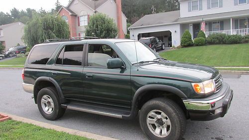 This is my 1999 Toyota 4Runner. The color is jade green with tan interior. The tan interior is clean in and out. Also, PA inspection is good up to April 4, 2014. This is a wonderful vehicle with 190406 mileage, I just recently changed the engine I have all the receipts from the mechanic who had put the new engine. It also has a new muffler from the front to the back with a new catalytic converter. This SUV is in good condition body wise, the transmission is in good shape. Also, it comes with a towing package. My "baby" is ready to go to a new home and a good driver. No offense, if you're not sure of buying it, please don't bid on it. I can be reached at cheryjean61@yahoo.com or 484-424-2624. Thank you, and have a good day.