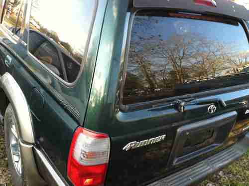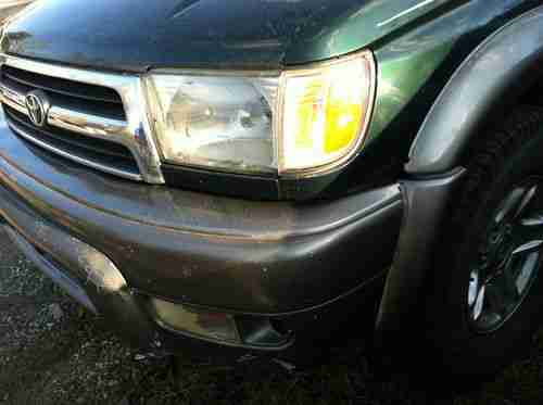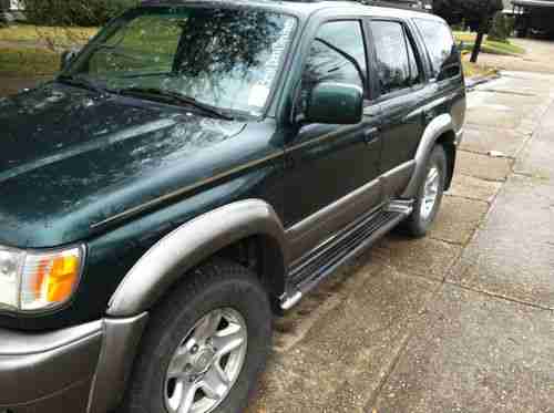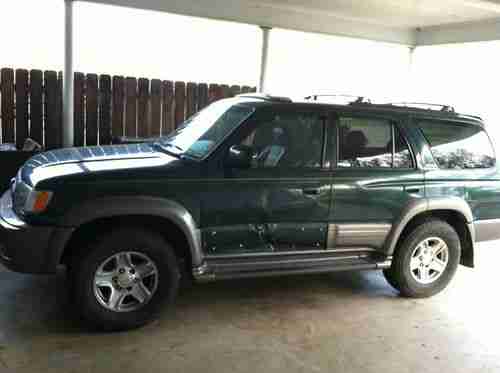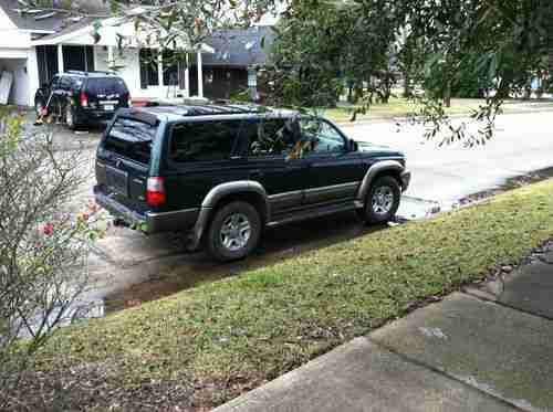 1999 toyota 4runner limited 209000 miles runs and drives check engine light off at the moment was on but i replace plugs wires and now its off will take you a to b as is i love driving it pretty smoth has blue led lighgts a loud cd player good engine and trans has leather seat covers and sub box with two 12" jbl subs also has a new gas tank float to replace the old one gauge doesn't work and new power steering pump to replace the original but it still works belts wires ngk and plugs air filter fuel filter oil filter and a chiltons manual this truck is in pretty good condition needs brakes done maybe a throttle body sensor replaced gas float replaced and some body work nothing is to major or expensive left to fix ive done most of the work myself and it is my daily driver as of now but i want a truck payment in full within seven days every day after seven days 25$ more storage if full payment not made within seven dayts and within fourteen days item must be picked up or forfeit deposit
