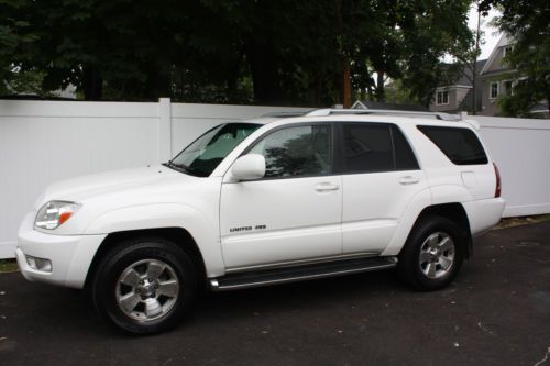 TOYOTA 4-RUNNER LIMITED, GREAT CONDITION, DRIVES AMAZING, AUTOMATIC START,(GREAT FOR REALLY COLD OR HOT DAYS) KEYLESS ENTRY, PREMIUM SOUND, LEATHER INTERIOR, HEATED FRONT SEATS, POWER STEERING, POWER REAR VIEW MIRRORS, DUAL AIRBAGS, SUNROOF, MULTI-DISC, 4WD(FANTASTIC IN THE SNOW)TOW PACKAGE, RACK, RUNNING BOARDS. WONDERFUL CAR NEVER HAD PROBLEMS, VERY RELIABLE AND VERY NICE!! THE TIRES ARE ALMOST BRAND NEW. THIS CAR HAS NEVER BEEN IN A ACCIDENT AND HAS BEEN MAINTAINED IN A METICULOUS MANNER, IT HAS NEVER MISSED AN OIL CHANGE OR ANY ROUTINE MAINTENANCE. THIS CAR HAS ALSO NEVER HAD ANY MAJOR MECHANICAL ISSUES OR ANY MAJOR WORK HAS BEEN DONE OR NEEDED ON THE CAR.