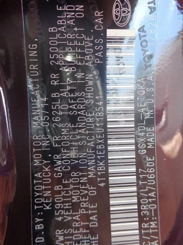 VIN (Vehicle Identification Number): 4T1BK1EBXEU118541