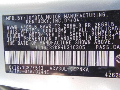 VIN (Vehicle Identification Number): 4T1BE32K84U310305