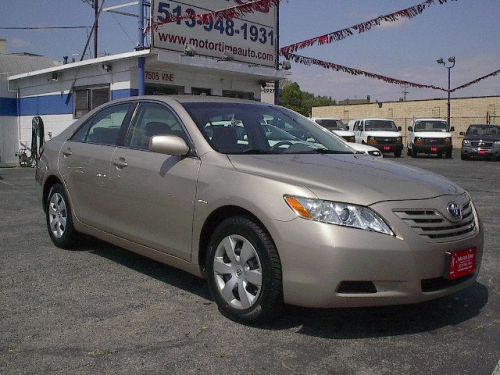 CARFAX ON-HAND, CERTIFIED AND IMMACULATE 2009 TOYOTA CAMRY LE, POWERED BY A 2.4L 4CYL, AUTOMATIC FRONT WHEEL DRIVE, DESERT SAND MICA EXTERIOR, BISQUE INTERIOR, JBL SOUND SYSTEM AM/FM CD MP3 WMA WITH AUX PLUG IN, CRUISE CONTROL, TILT WHEEL, BLUETOOTH, AUDIO PHONE AND CRUISE CONTROLS ON STEERING WHEEL, POWER LOCKS, POWER MIRRORS, POWER WINDOWS, KEYLESS ENTRY, NEW TIRES! NO ACCIDENTS! VERY NICE RIDE! WHY PAY MORE AT THE BIG EXPENSIVE DEALERS? WHY PAY RETAIL? TRADES WELCOME. LAY-A-WAY PLAN. EXTENDED DIAMOND WARRANTY PROGRAM AVAILABLE! PLEASE CALL 888-472-5610. THIS CLEAN, SAFE and RELIABLE VEHICLE FOR ONLY $9,995 !!! SEE OUR OTHER FABULOUS CARS AND TRUCKS ON OUR WEBSITE www.motortimeauto.com Our business hours are 10AM - 6PM M-F AND 10AM - 3PM SAT. CLOSED SUNDAY. We cater to buyers from Cincinnati, Dayton, Columbus, Louisville, Lexington, Indianapolis and all around Ohio, Kentucky and Indiana. We are a licensed OHIO Independent Auto Dealer. Please call and ask about Financing options. If you have your own Bank or Credit Union we will be happy to provide you with a "buyers order" for your bank/credit union upon request. We are FAMILY OWNED!! LOW OVERHEAD!! We DO NOT work for COMMISSIONS!! We STRIVE for CUSTOMER SATISFACTION and BUILDING CUSTOMER RELATIONSHIPS by offering FAIR & HONEST DEALS on RELIABLE VEHICLES. Please call us today for a GREAT DEAL!! We buy most of our cars directly from financial services companies, banks, private owners and leasing companies allowing us to buy our cars at below average auction value. That is why we are able to offer you a price well below other dealers for a like car. Why buy a car from a big name dealership and their high price to cover their overhead. Please remember, BUY A GREAT VEHICLE HERE AT MOTORTIME AND WE WILL SAVE YOU A LOT OF MONEY! TRADES WELCOME. LAY-A-WAY PLAN. EXT. WARRANTY PROGRAM AVAILABLE! WHERE ELSE ARE YOU GOING TO FIND ONE LIKE THIS? SEE OUR OTHER FABULOUS CARS AND TRUCKS ON OUR WEBSITE:www.motortimeauto.com Our business hours are 10AM-6PM M-F AND 10AM - 3PM SAT.CLOSED SUNDAY.