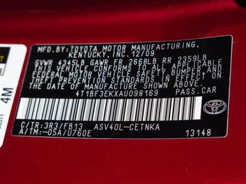 VIN (Vehicle Identification Number): 4T1BF3EKXAU098169