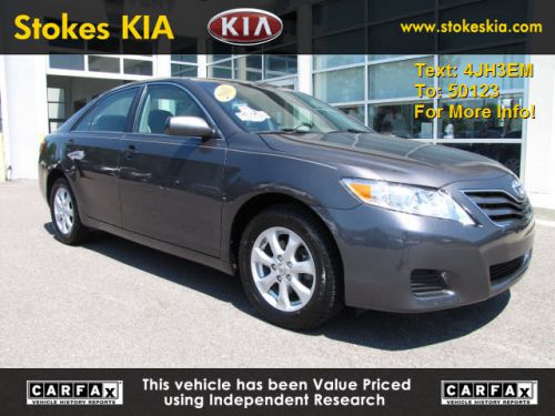 Your lucky day! Don't wait another minute! Toyota has outdone itself with this gorgeous-looking 2011 Toyota Camry. It just doesn't get any better at this price! Need a fuel-efficient car with rock-solid reliability? This dependable Camry XLE will do the trick in style! An Intellichoice 2009 Motorist Choice Award Winner. As you do your comparison shopping, you will see Stokes Kia offer some of the best values in the market. We will provide you a Carfax, Comprehensive Vehicle Inspection, and how we arrived at the price. We may not be the lowest, but if you want to know who is we will show you that too. Call or Stop by Contact Stokes Kia at 888-355-7122 in Charleston, South Carolina. Excludes tax, tag, registration and title and includes $399.50 Administrative Fee. Prices do not include destination charges, dealer add-ons, tax, license, and does include $399.50 Administration Fees. We offer the largest selection of used vehicles in the Carolina's with the best pricing out there. If you don't believe us, give us a call and we will show you.
