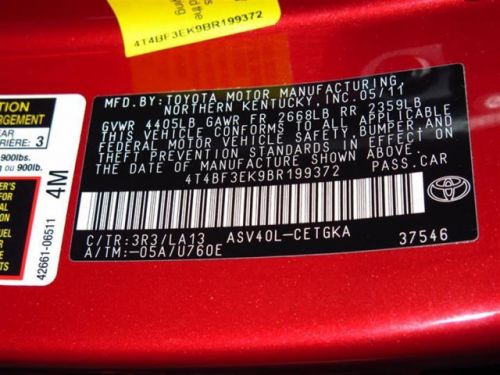 VIN (Vehicle Identification Number): 4T4BF3EK9BR199372