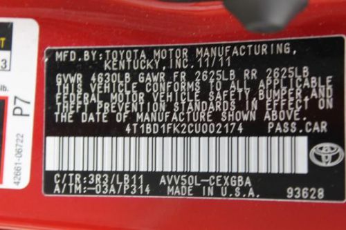 VIN (Vehicle Identification Number): 4T1BD1FK2CU002174