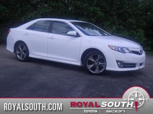 SE V6~~~18' ALLOY WHEELS~~~NAVIGATION~~~BACKUP CAMERA~~~268 HORSEPOWER! This 2012 Toyota Camry SE V6 is a rare find for Camry customers, but if you're looking for HUGE HORSEPOWER, ALL THE TOYS, and SLEEK STYLING! If you're looking for options, this is it!! STILL COVERED UNDER TOYOTA FACTORY WARRANTY! You'll love the upgrades on the inside--but first, notice the BLADE STLYE 18' ALLOY WHEELS w/ Sport-Tuned Electric Power Steering and Sport-Tuned Suspension Including Springs & Shock Absorbers. What does that mean in plain English? THIS CAMRY CAN BOOGIE! Check out this list of upgrades: DISPLAY AUDIO w/ NAVIGATION & ENTUNE ($650--includes 6.1' Touch Screen, 10 'JBL GREEN EDGE' Speakers including SubWoofer and Amp, XM RADIO w/ free trial from the dealership, HD Radio w/ iTunes TAgging, USB Port, BLUETOOTH, Advanced Voice Recognition, and Music Streaming Audio via Wiresless), CONVENIENCE PACKAGE ($895--BACKUP CAMERA, Auto-Dimming Rear View Mirror w/ Compass and HomeLink), LEATHER PACKAGE ($1,050--Leather-trimmed Ultrasuede Seats, HEATED SEATS, POWER SEATS), MOONROOF ($915), Rear Bumper Applique ($299), REMOTE START ($499--Awesome for cold mornings), All Weather Floor Mats ($100). All told, this Camry had an original MSRP of OVER $32,000! This was one of the most expensive Camry's produced--it has allllllllllll the toys. Enjoy one of the BEST SELLING vehicles made in America, but an SPORTIER EXERIENCE! 30+ MPG and nearly 300 HP...look out! Most of our Used Vehicles come with a 3 month / 3,000 mile warranty, FREE of charge!! All purchases give you FREE CAR WASHES every Saturday for the life of the vehicle! Thank you for considering Royal South. Disclaimer: All prices listed are believed to be accurate; we don't warrant or guarentee listed price.