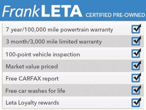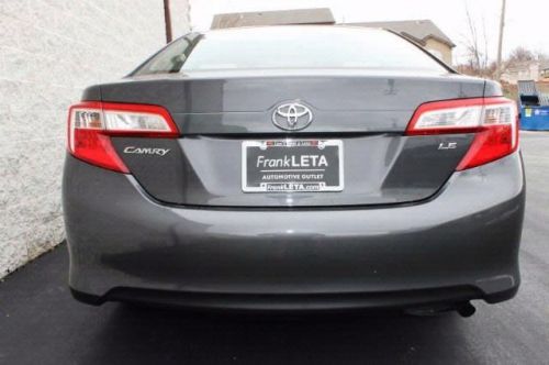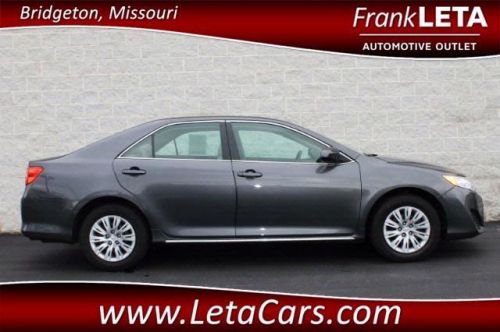CAMRY STYLE AND RELIABILITY!! ONE PREVIOUS OWNER!! 5-STAR SAFETY RATINGS!! FUEL EFFICIENT, UP TO 35 MILES PER GALLON!! 100-POINT INSPECTED VEHICLE!! FABULOUS WARRANTY COVERAGE!! CLEAN CARFAX NO ACCIDENTS RECORDED!! Camry LE is Highly Furnished with Features such as: Cloth Upholstery, Power; Windows, Door Locks, and Mirrors, Bluetooth, Steering Wheel Mounted Audio and Cruise Controls, External Temperature Display, USB and Auxiliary Connectivity, Dusk Sensing Headlights, and 16 Inch Steel Wheels with Full Covers. +NHTSA 5-Star Safety Ratings+. Earned the most 2012 Best Overall Value Awards of any brand. Car And Driver counts it among the top ten best sellers. J.D. Power and Associates awards 2012 Camry 5 out of 5 Power Circles for initial vehicle quality mechanical. **Frank Leta Certified Used Vehicles Provide a 90 Day/3,000 Mile Limited Comprehensive Warranty and a 7 Year/100,000 Mile Limited Powertrain Warranty for Your Protection!** Price Includes $500 Finance Loyalty Coupon!! Price includes finance bonus cash! See dealer for details Think all dealerships are the same? Think again! Frank Leta has been serving the St. Louis area for almost 50 years. Our philosophy is to deliver an excellent product with excellent customer service 100% of the time. We have a proven track record of excellence, and a lot of our sales come from referrals. Come let us show you the Frank Leta difference! And remember...You Can't Beat a Leta!!!