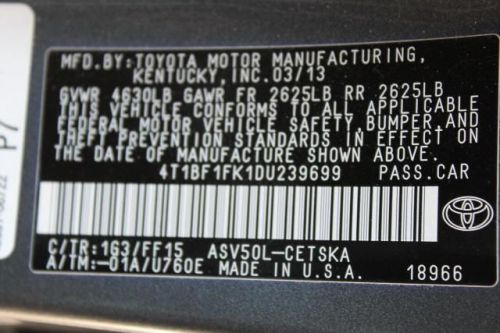 VIN (Vehicle Identification Number): 4T1BF1FK1DU239699