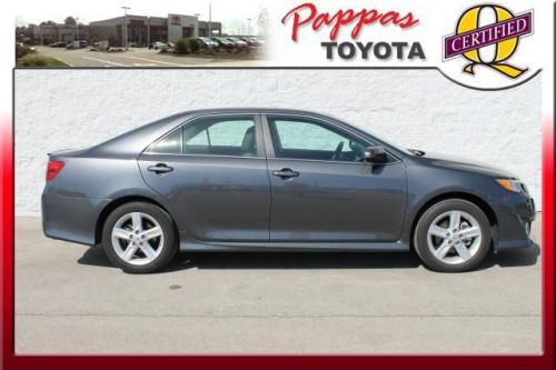 Stylish and dependable, our 2013 Toyota Camry SE shown here in attractive Magnetic Gray Metallic stands the test of time. The 2.5 I-4cyl engine produces 178hp on demand. Paired with a smooth shifting 6 Speed automatic, it attains 35mpg on the open road. Durability and reliability continue to be the trademark of this car, and with a sport-tuned suspension you'll experience even better handling than before! The exterior of the Camry SE is accented by an aerodynamic wedge shape, distinctive tail lights and 17 inch alloy wheels. The elegant interior features sport seats and a leather steering wheel. You'll appreciate Bluetooth technology, satellite radio, and a sound system with iPod integration. Conveniently, a central touchscreen interface for audio, phone and car information will help you concentrate on the road ahead at all times. Our Camry's confident handling, straightforward technology, and lots of comfortable passenger space make this a great addition to your family. Thanks to intelligent engineering with anti-lock brakes, stability assist and an army of airbags, you will always be safe and secure. A powerful mix of safety, comfort, reliability and value--this is a smart choice! Print this page and call us Now... We Know You Will Enjoy Your Test Drive Towards Ownership! Please Contact a Member of our Sales Team For A Test Drive Today. **Please print this page and bring to our dealership** After printing this page and presenting it to one of our internet team members, you can experience the Pappas Toyota difference. We have been in business in St. Charles for over 30 years! Contact our internet department at 888-778-3792 Toll Free and we would be happy to assist you!