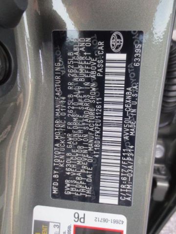 VIN (Vehicle Identification Number): 4T1BD1FK7EU112611