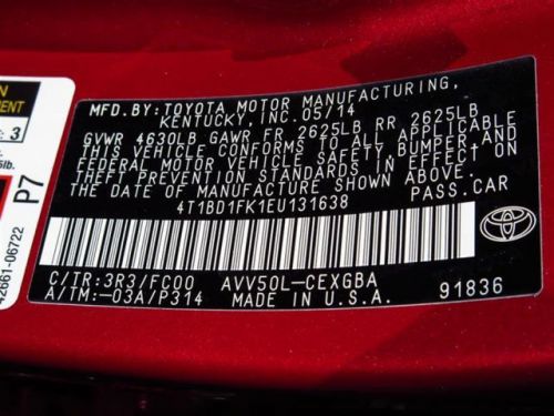 VIN (Vehicle Identification Number): 4T1BD1FK1EU131638