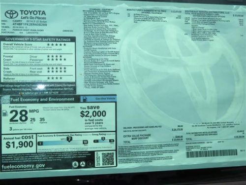 2 12V DC Power Outlets,2 Seatback Storage Pockets,CLOTH SEATS 60-40 Folding Bench Front Facing Fold Forward Seatback Cloth Rear Seat,Air Filtration,Analog Display,Cargo Area Concealed Storage,Cargo Space Lights,Carpet Floor Trim and Carpet Trunk Lid/Rear Cargo Door Trim,CLOTH SEATS Cloth Front Seats w/Cloth Back Material,Cruise Control w/Steering Wheel Controls,Day-Night Rearview Mirror,Delayed Accessory Power,Driver And Passenger Visor Vanity Mirrors w/Driver And Passenger Auxiliary Mirror,Driver Foot Rest,Engine Immobilizer,Fade-To-Off Interior Lighting,FOB Controls -inc: Trunk/Hatch/Tailgate,Front Bucket Seats -inc: 6-way manual drivers seat and 4-way manual passenger seat,Front Center Armrest and Rear Center Armrest,Front Cupholder,Front Map Lights,Full Carpet Floor Covering,Full Cloth Headliner,Full Floor Console w/Covered Storage, Mini Overhead Console w/Storage and 2 12V DC Power Outlets,Gauges -inc: Speedometer, Odometer, Engine Coolant Temp, Tachometer, Trip Odometer and Trip Computer,HVAC -inc: Underseat Ducts,Illuminated Locking Glove Box,Instrument Panel Covered Bin, Driver / Passenger And Rear Door Bins,Interior Trim -inc: Metal-Look Instrument Panel Insert, Chrome And Metal-Look Interior Accents,Manual Adjustable Front Head Restraints and Fixed Rear Head Restraints,Manual Air Conditioning,Manual Tilt/Telescoping Steering Column,Outside Temp Gauge,Power 1st Row Windows w/Driver 1-Touch Up/Down,Power Door Locks w/Autolock Feature,Power Rear Windows,Rear Cupholder,Remote Keyless Entry w/Integrated Key Transmitter, 2 Door Curb/Courtesy, Illuminated Entry, Illuminated Ignition Switch and Panic Button,Remote Releases -Inc: Mechanical Trunk/Hatch and Mechanical Fuel,Trip Computer,Urethane Gear Shift Knob,Valet Function,Body-Colored Door Handles,Body-Colored Front Bumper,Body-Colored Power Side Mirrors w/Manual Folding,Body-Colored Rear Bumper,Chrome Bodyside Insert,Chrome Grille,Chrome Side Windows Trim,Clearcoat Paint,Compact Spare Get a FREE Car Detail with vehicle purchase!